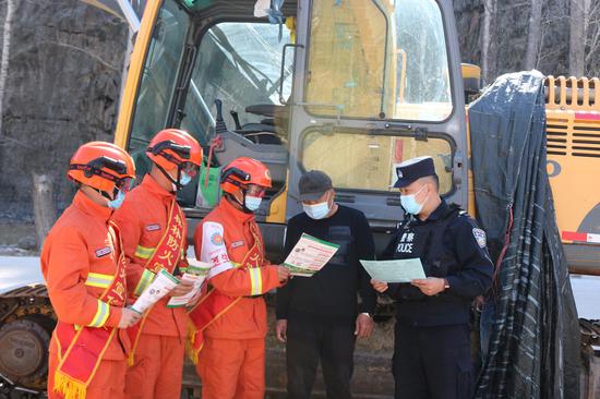 中新网新疆新闻5月4日电(杨如意)近日,为进一步做好旱季防火安全工作, 铸牢边境地区安全防线, 强化辖区群众安全意识,阿勒泰边境管理支队拉斯特边境派出所联合阿勒泰地区森林消防支队消防救援队共同对辖区边境地区开展集中清边活动。此次活动,移民管理警察和消防救援队员采取步巡和马巡的方式,逐一对边境管段进行踏查,向一线牧民群众讲解边境法律法规、预防一氧化碳中毒和预防火灾的相关知识,有效提升了辖区群众安全防范意识和自防自救能力。