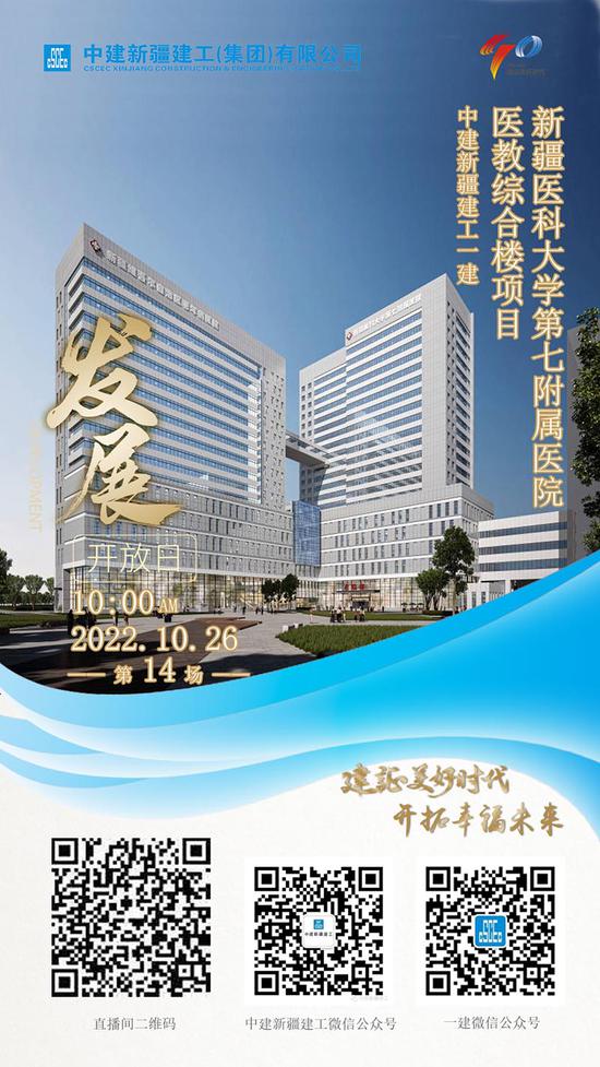 中建新疆建工承建的新疆医科大学第七附属医院医教综合楼项目,于10月26日开展“建证美好时代,开拓幸福未来”云开放展播活动。