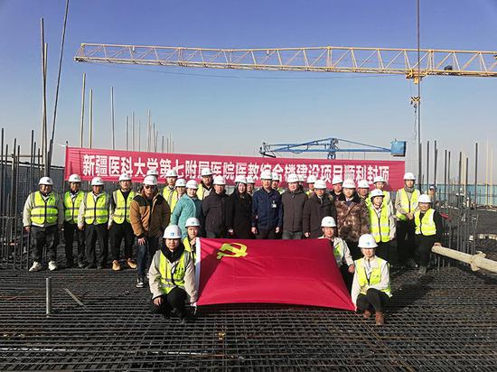 先锋引领,推进产值攻坚。七附院项目党支部为推动“快速建造”目标落地,第一时间成立党员攻坚突击队,开展“点燃奋斗精神 实现完美履约”劳动竞赛,采取“夜间带班+挂图作战”方式,每月总结评比,党员干部带头,提高节点完成率,连续7天7夜完成正负零混凝土浇筑任务,在10个月有效工期内按期实现主体封顶等多个重要节点任务,实现完美履约,赢得业主满意,又顺利承接了新疆医科大学第七附属医院医疗康养中心项目。