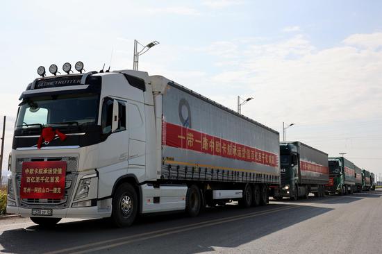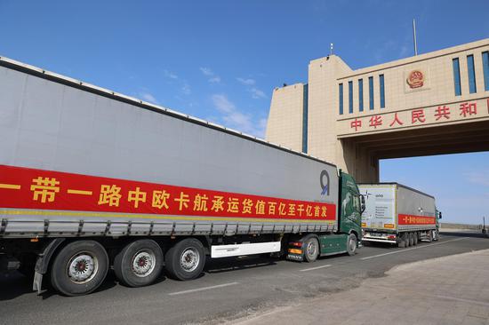 阿拉山口市举行“一带一路”中欧卡航承运货值百亿至千亿首发仪式