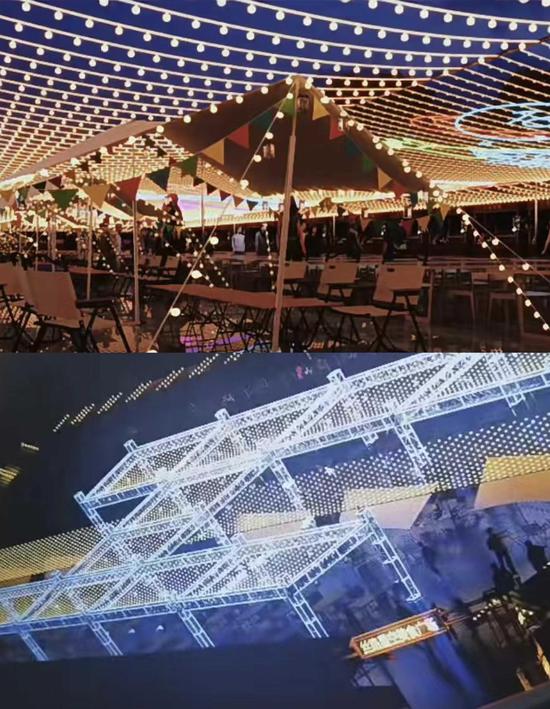 这座藏在城市里的星空、鲜花、风情小镇,让人不自觉流露陶渊明“久在樊笼里,复得返自然”的情怀。这里凭借独具特色的巴洛克光雕艺术展成为艺术地标打卡地,除了有餐饮、百货,还在建筑顶部制作了大型光影场景,同时夜市设置各类主题区,成为集精品零售、家居生活、文旅特产、餐饮美食、休闲娱乐等功能于一体的复合型夜市。