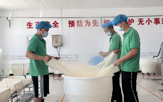 王建民说:“在这里上班离家近,每个月有4000元的收入,还能学到制作豆制品的手艺,一举两得。”