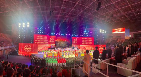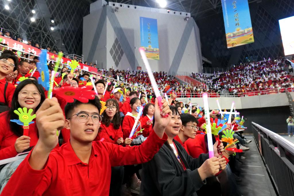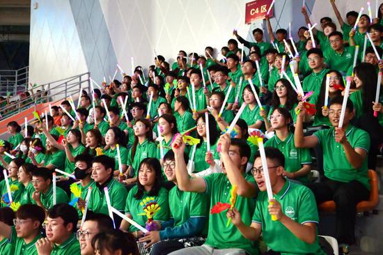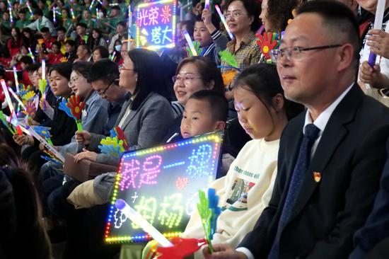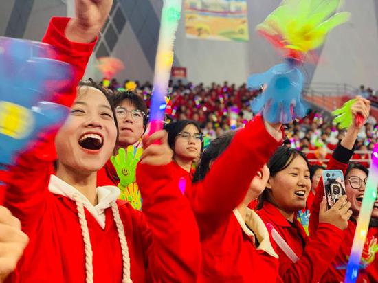 场上绚丽多彩,场下热烈欢腾。体育馆汇聚成欢乐的海洋,集聚起奋进新征程、建功新时代的磅礴力量。