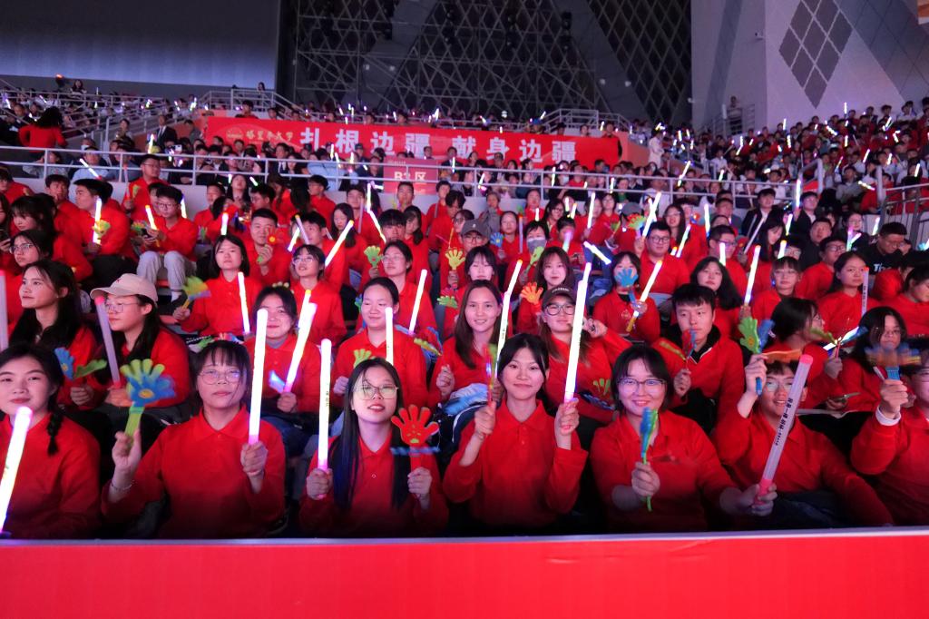 校园说唱《为母校点赞》,歌舞组合《奔跑吧,胡杨青年》——歌曲《夜空中最亮的星》《奔跑》《我们都是追梦人》,呈现了新时代塔大莘莘学子朝气蓬勃的精神面貌,展现了新时代胡杨青年敢想敢拼、奋发有为、报效祖国的青春热情。荧光的闪烁,悦动的姿态、青春的风采,点燃了整个体育场。