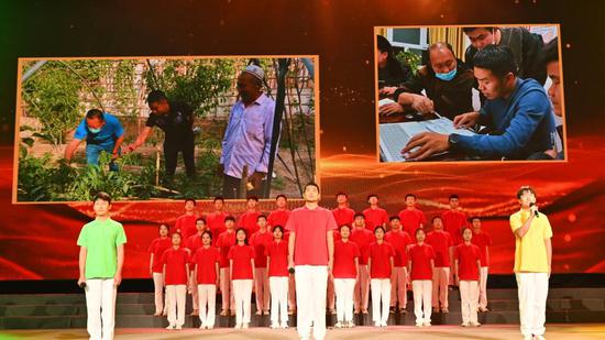 塔里木大学历任校领导、离退休干部和教师、校友、家属等代表,同全校处级干部、师生代表共同观看演出。