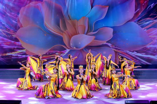 民族联舞《石榴花开幸福来》、舞蹈《丝路彩虹》,通过多彩的服饰、动人的舞姿、绚丽的灯光,展示了塔里木大学在民族团结和开放办学中取得的可喜成果。歌曲《再一次出发》表达了塔里木大学站在新起点,肩负新使命,创造新辉煌的坚定信心决心。