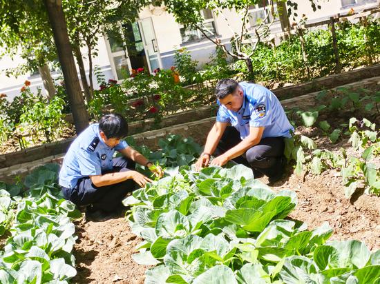 各派出所积极响应,组织民警辅警清理院内闲置地块,除去杂草、石块,翻土培肥,开辟出一片片生机盎然的菜园。工作闲暇时,大家种下辣子、豆角、茄子、西红柿、黄瓜等蔬菜,既收获了新鲜无公害的绿色蔬菜,更在劳作中传承了勤俭节约、艰苦奋斗、自力更生的精神。