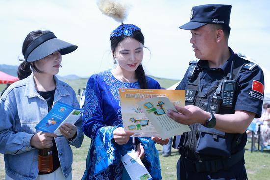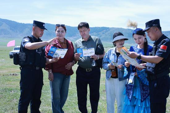 6月1日,“马跃云端 牧歌悠扬”农牧民民宿体验活动在阿勒泰市萨尔胡松乡库尔特村盛大开演。新疆出入境边防检查总站阿勒泰边境管理支队库尔特边境派出所在做好此次活动安保工作的同时,积极向参加活动的群众开展法律法规宣传。
