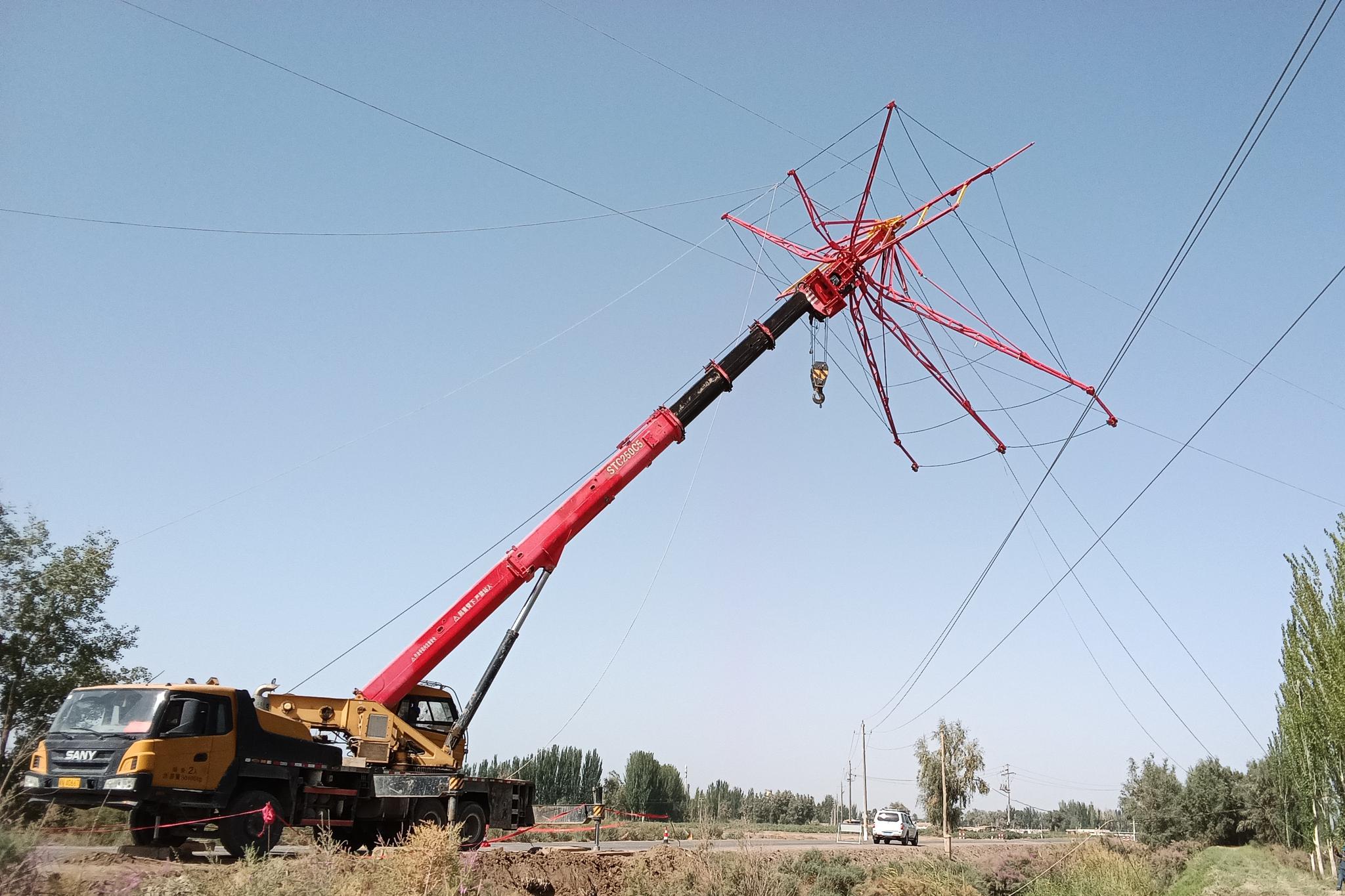 阿克苏首次应用移动式伞形跨越架实施10千伏带电线路跨越施工