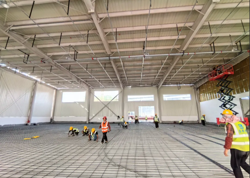项目工期仅4个月,12月31日竣工。为保障项目施工安全平稳推进,温宿棉纺厂项目全体员工毅然坚守岗位、全力抢工大干。施工现场一派繁忙,钢结构起重吊装作业与辅房高支模施工正全力推进,工人们不畏烈日炙烤、不惧月色披身,争分夺秒地奋战在一线。