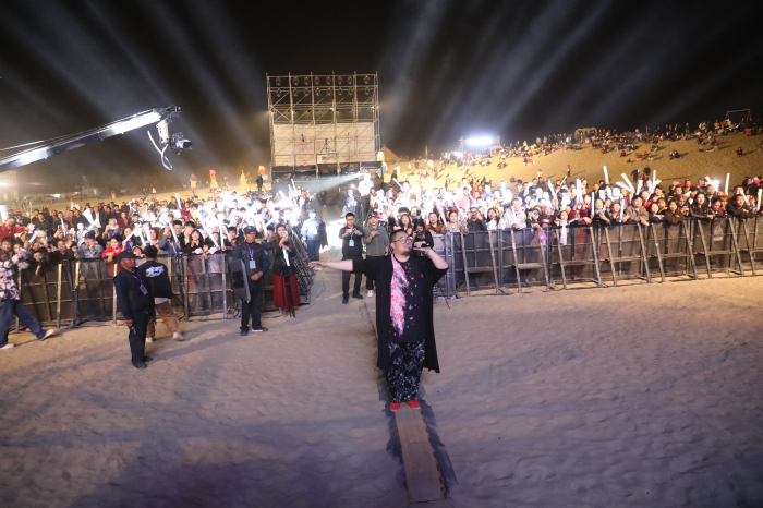 夜幕降临,大批乐迷聚集现场。舞台上,国际知名DJ轮番登场,用强劲的电子节拍引爆全场,同时,音乐节注重音乐多样性,邀请了包括来自新疆本土的知名乐队,以及国内多支具有影响力的摇滚、民谣乐队登台献艺。风格各异的音乐在沙漠上空交织回响,既展现了现代音乐的活力,也融入了独特的音乐元素,为观众呈现了一场层次丰富、跨越文化的音乐之旅。