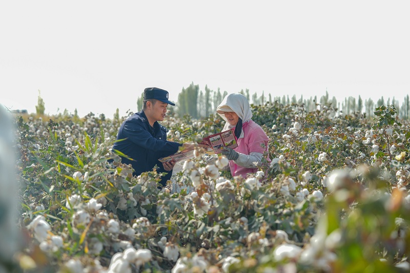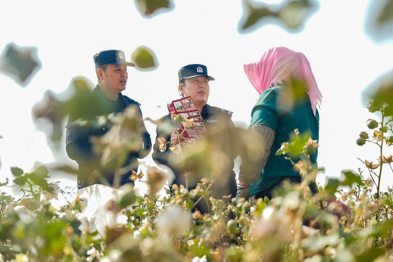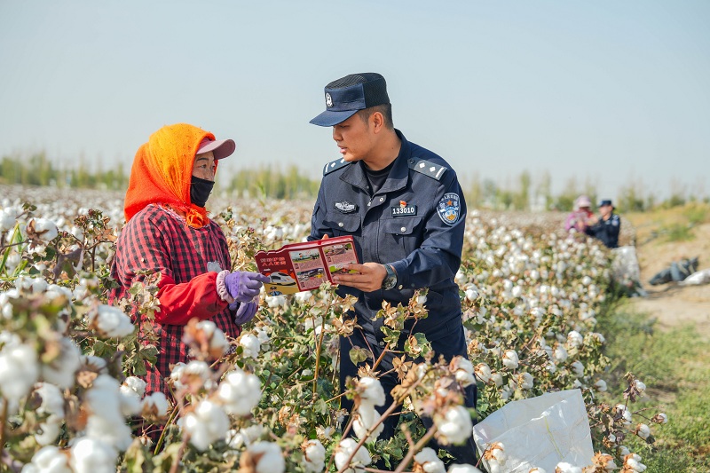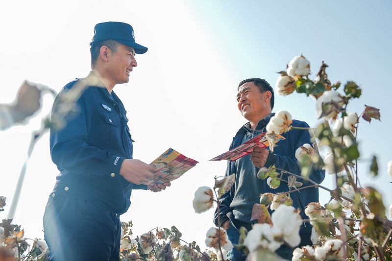 金秋时节,辖区铁路沿线周边的棉田与辣椒地迎来丰收季。2025年10月10日,乌鲁木齐铁路公安局哈密公安处哈密站派出所组织民警深入田间地头,开展了一场以“护航秋收,平安相伴”为主题的线路安全普法宣传活动。