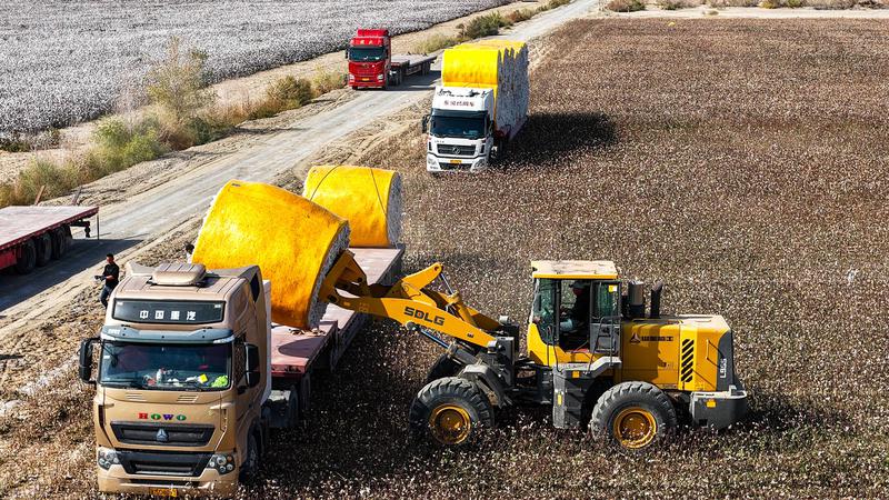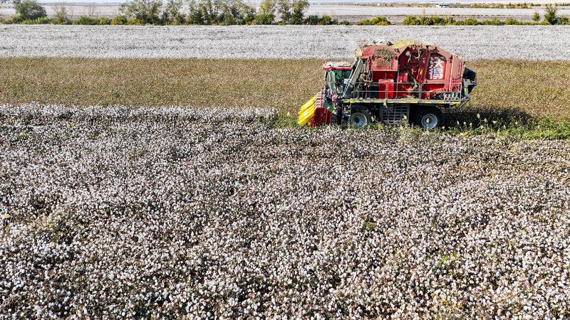 棉花种植户阿不都拉·吐尔逊站在自家棉田前,脸上洋溢着丰收的喜悦:“我种了1038亩棉花,平均亩产可以达到500多公斤左右,高产区能达到600公斤,产量比较高。”“所有棉田使用采棉机进行采收,不仅速度快,而且损耗小,这对我们种植户来说真是太方便了。”阿不都拉·吐尔逊说。现代化的采棉设备不仅缩短了采摘周期,也保证了棉花的质量。