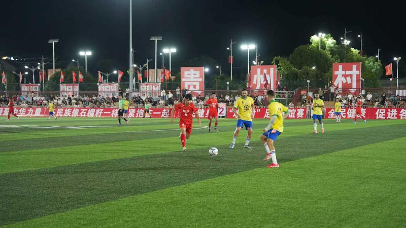 10月4日,2025年贵州村超“一带一路”国际友谊赛迎来焦点之战。新疆巴楚胡杨足球队与巴西教练团队足球队在贵州榕江展开激烈对决,最终,巴楚胡杨队以4:2的比分赢得比赛,斩获开门红。