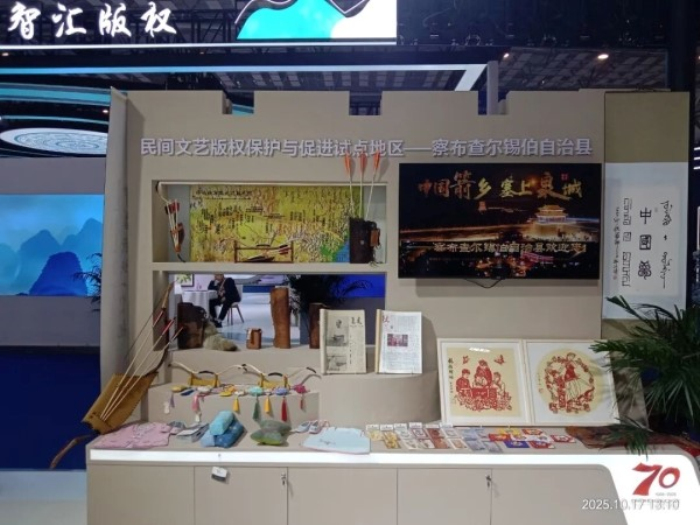 展会期间,察布查尔县在国家馆与新疆展区双双设立独立展区,成为焦点。国家级非遗锡伯族弓箭制作技艺、精美刺绣及其文创衍生品惊艳亮相。锡伯文报纸、剪纸等展品,生动体现了版权工作对传统文化“创造性转化、创新性发展”的有力推动,吸引了众多国内外嘉宾驻足。