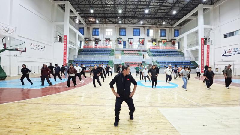 本次培训课程以刘彦英副教授创编的“中华太极操”为核心,内容涵盖理论讲解、示范教学与集中训练。授课过程中,教学团队注重动作技法与文化精神的有机融合,深入讲解“抱拳礼”所蕴含的“以礼相待、以和为贵”的价值理念,阐释起势动作所体现的“天人合一”思想,强调以柔克刚、以静制动的传统智慧与文化气度。参训教师认真投入、循序练习,在结业考核中顺利完成展示,体现出扎实的教学成效与昂扬向上的精神面貌。