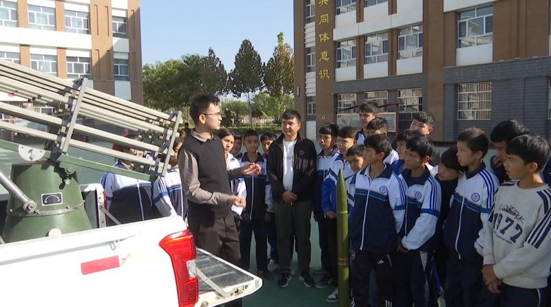 麦盖提县第四中学学生海迪且·阿不力克木说道:“这次校园科技节真的太让人印象深刻了。最让我震撼的,是近距离见到了人工影响天气的火箭发射车,老师给我们详细讲解了它在防灾减灾中发挥的重要作用,让我深深感受到科技的强大力量。这场科技节彻底点燃了我对科学的好奇心,未来我将主动探索、积极实践,在科技的世界里解锁更多未知的乐趣。”