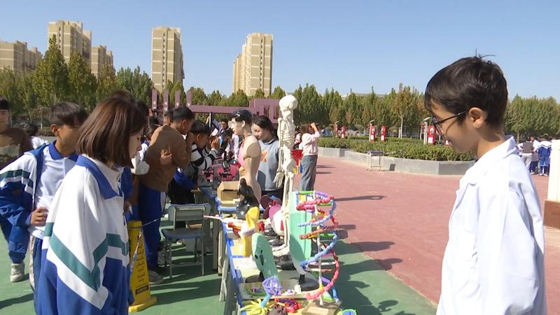 “三、二、一,发射!”随着一声清脆的指令,现场欢呼声瞬间响起。一枚由塑料瓶、降落伞等简易材料精心打造的水火箭,裹挟着孩子们的期待直冲云霄,划出一道亮眼的弧线。而另一边,学生们结合课堂所学,用PVC管道、硬纸板等常见材料自制的望远镜、生物细胞模型,造型精巧又充满巧思,牢牢吸引了全场师生的目光,大家纷纷驻足围观、交流探讨,现场氛围热烈非凡。