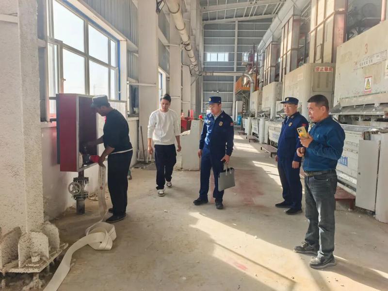 10月19日,联合检查组深入企业生产车间、棉花堆场、仓储库房、配电室等重点区域,对照消防安全标准,对消防通道畅通情况、灭火器材配置有效性、应急照明及疏散指示标志完好度等进行细致检查,现场指出部分企业存在的“仓储棉花堆垛超距”“消防栓被遮挡”等隐患问题,为后续整改工作明确了具体方向。
