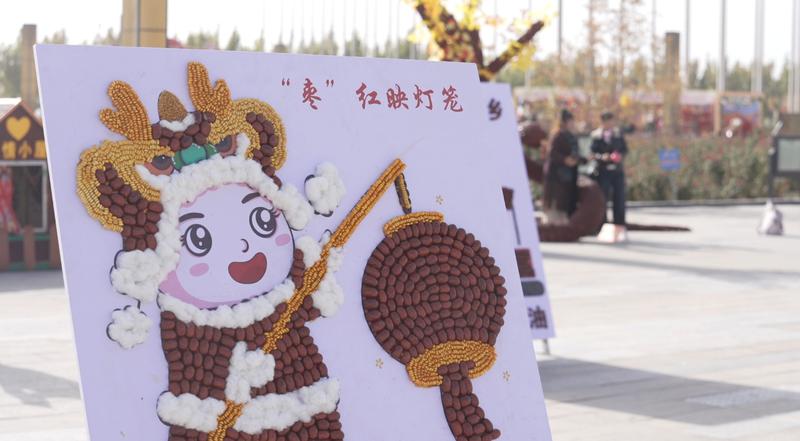 活动现场,一组组以红枣为核心,棉花、核桃、枸杞、玉米等农作物为点缀的艺术作品格外吸睛。“万里江山图”气势恢宏,枣龙灵动鲜活,“天下第一枣”造型夺目,引得游客纷纷驻足观赏、拍照打卡,定格这份独特的丰收之美。