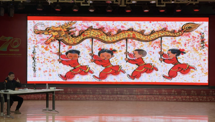 中少总社“阅读+”全国名师、著名书画家仇立权在接受采访时表示,作为《我的家在中国——五十六个民族是一家》的插画作者,他希望通过画笔,让孩子们直观感受到中华民族多元一体的美丽画卷。“今天我以‘马’为题作画,马象征着勇往直前、团结协作的精神。希望我们国家的56个民族永远像石榴籽一样紧紧抱在一起,共同奔腾在新时代的征程上。每个民族都有很多精彩的故事,希望同学们通过这本书,慢慢去学习欣赏,希望同学们找到自己的兴趣爱好,成为国家的栋梁之材。”