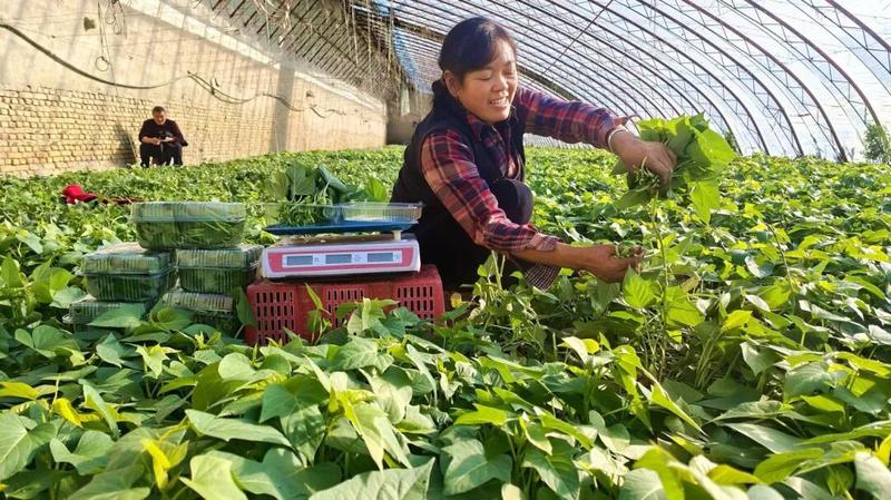 “自从种上这些特色绿叶菜,我们就忙得停不下来喽。”正在采摘豌豆尖的安定村蔬菜专业合作社管理员韦英晴一边麻利地劳作,一边笑着说道。她的指尖在嫩绿的枝蔓间游走,不一会儿就采收了一盒盒新鲜蔬菜。“以前种普通蔬菜,收入不稳定。现在合作社引进了耐采性强、品质优良的特色品种,一年四季都有采摘、打包、销售的活儿,采摘期从未间断过。”