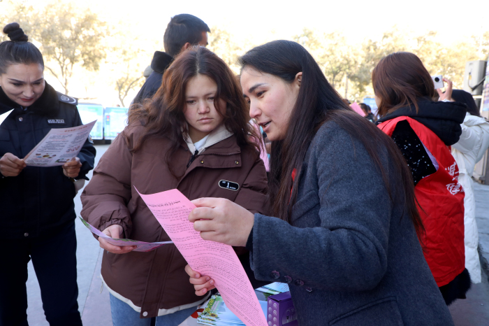在莎车县绿城时代广场活动现场,工作人员通过摆放图文展板、设置咨询台、发放宣传材料等方式,向广大群众普及艾滋病传播途径、预防手段及治疗进展。工作人员还通过艾滋病知识问答的形式,与现场群众互动,并发放小礼品。不少群众主动领取宣传资料,认真学习防艾知识,现场氛围浓厚。
