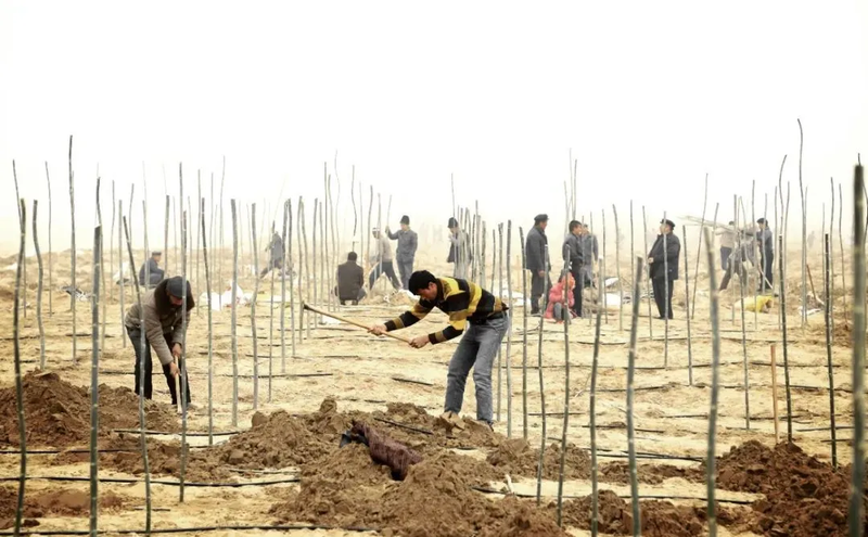 “麦盖提县启动实施百万亩造林计划的时候,很多人心里没底。无数例子就在眼前,种了一大片,但成活的寥寥可数。树苗的成活率一直是个问题,即使种下去了,也难以生长。最让人无奈的是僵苗,那是已经发芽的树苗,但就是不长,有气无力地耷拉在沙地上,仿佛要告诉我们沙漠造林就是‘天方夜谭’。”麦盖提县林业和草原局党组成员、防沙治沙中心党支部书记殷红海回忆道。