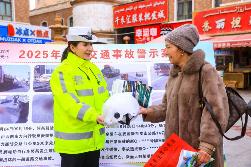 麦盖提县麦盖提镇新时代社区居民美合日班·买买提说道:“今天的交通安全宣讲内容详实、案例深刻,让我对‘交通安全’的重要性有了全新且深刻的认知。它不仅关乎个人出行便利,更直接牵动着生命安全与家庭幸福。今后,我将把‘文明出行’真正融入日常行动,无论是遵守交通信号灯、礼让行人,还是规范使用交通工具,都会以更严谨的态度践行交通规则,切实对自己的生命安全负责,也为营造安全有序的出行环境尽一份力。”