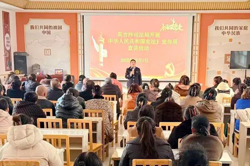 本次宣传周,县司法局组织律师、公证员、基层法律服务工作者及乡镇司法所长等45人,组建了一支村(社区)法律顾问队伍,深入全县开展全覆盖式宪法宣传活动,让法治精神融入群众日常生活,为法治英吉沙建设筑牢群众基础。截至目前,宣传周活动累计发放宪法宣传资料1000余份,覆盖群众超4万人。