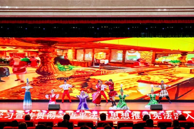 “今天我们带来的歌舞节目《伟业》,旨在展现全面依法治国的壮阔历程,诠释法治与文化的深层连接。”大河沿子镇宣传办干部奥龙巴依表示,宪法既是守护边疆的“压舱石”,更是护航发展的“指南针”,传递这份法治信仰意义非凡。希望通过精心编排的节目,让大家明白宪法不是抽象的条文,而是融入生活的守护和发展基石。