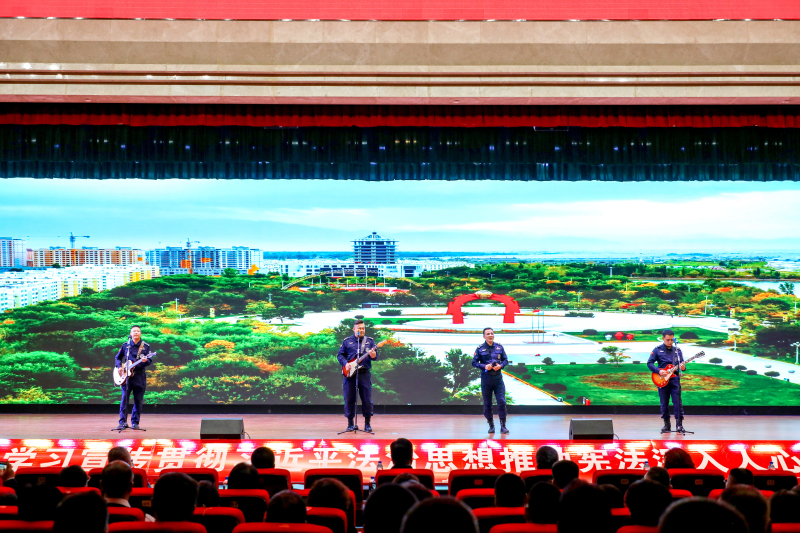 随后,居马什·马力克宣布,精河县2025年“宪法宣传周”启动。在法治文艺汇演中,各类节目精彩上演。《新疆是个好地方》《领航新时代》《伟业》等歌舞传递法治正能量;《博尔塔拉的另一面警色》《帕米尔雄鹰》《宪法伴我们成长》展现了公职人员的法治担当;情景朗诵《税徽闪耀处宪法映边疆》诠释了宪法在工作中的实践;小品《家里来了“娘家人”》再现了基层干部依法化解纠纷的场景。活动中还穿插了宪法有奖知识竞答环节,吸引了观众踊跃参与,现场气氛热烈,有效巩固了普法效果。