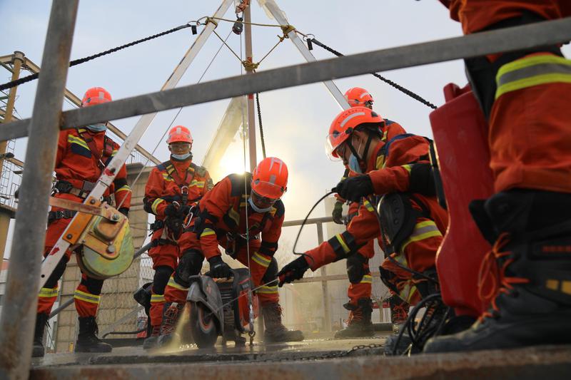 图为参赛队员们正在开展综合救援操比赛。寒冬风冽冽,铁骨气铮铮。为检验消防救援队伍冬季执勤岗位练兵工作成效,激发指战员训练热情,促进练兵备战交流,推动灭火救援能力转型升级。12月7日至10日,阿克苏地区消防救援支队在温宿县、沙雅县分两个片区开展第八届“蓝焰·对决”执勤岗位练兵比武竞赛,来自支队机关、各县(市)大队、基层消防救援站30支代表队、共158名参赛队员展开激烈角逐。