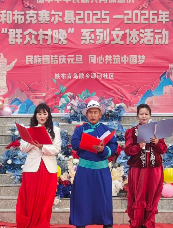 和布克赛尔县:源河社区村晚欢歌聚民心 民族团结迎新年