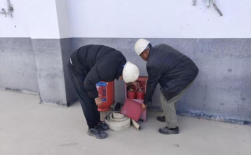 (图为:检查组人员在检查灭火器)