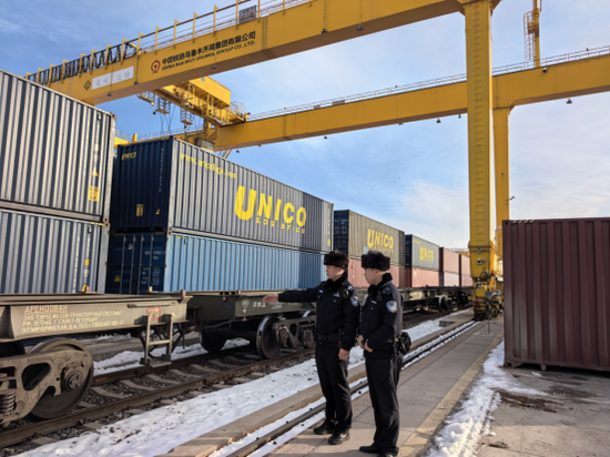“越是节假日,越要瞪大眼睛。咱们多走一步,班列就多一份安全。”副所长王文升一边对民警说着,一边仔细检查着集装箱的铅封。从车头的机械部件到车尾的每一个连接处,从货物的装载加固情况到消防隐患,他们的目光不放过任何细节。脚下的钢轨冰凉,积雪被踩得咯吱作响,但这支由20名民警组成的“中欧班列前哨班”日复一日地徒步巡查,织就了一张严密的治安防控网。