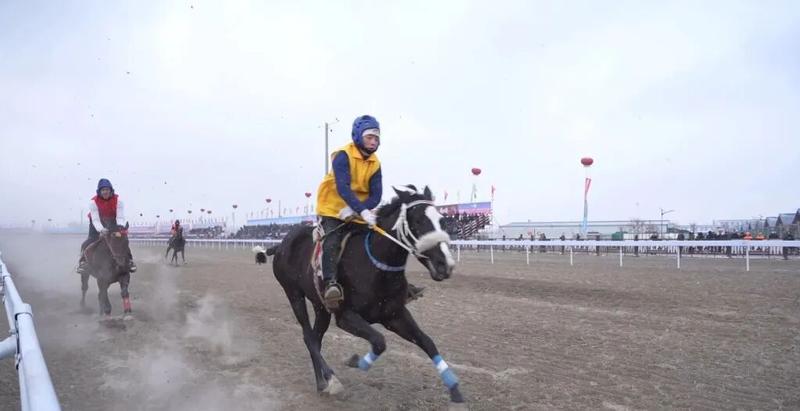 选手们身着刺绣精美的服饰,腰挎马鞭、脚蹬皮靴,个个精神抖擞、意气风发,举手投足间尽显边疆儿女昂扬向上的精神风貌。随着嘹亮的开赛哨声响起,速度赛马项目率先拉开战幕,参赛选手身着赛服,脚踩马镫、身姿矫健,驾驭骏马在风雪中疾驰狂奔,扬起阵阵雪雾,速度与激情的碰撞瞬间点燃全场热情。