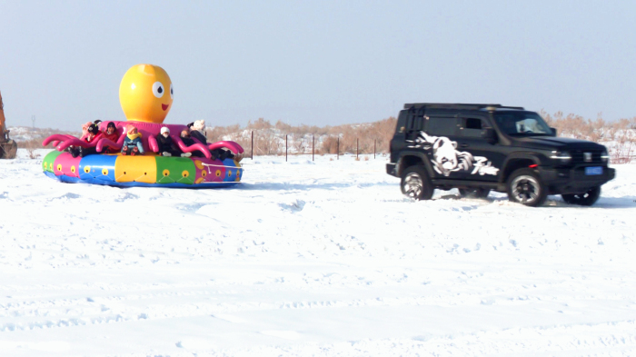 游客马雨婷表示:“新年第一天,特意和家人一起外出游玩。这里有好多越野车、摩托车项目,可以感受到雪地越野的刺激,还有特色美食,真是不虚此行。”