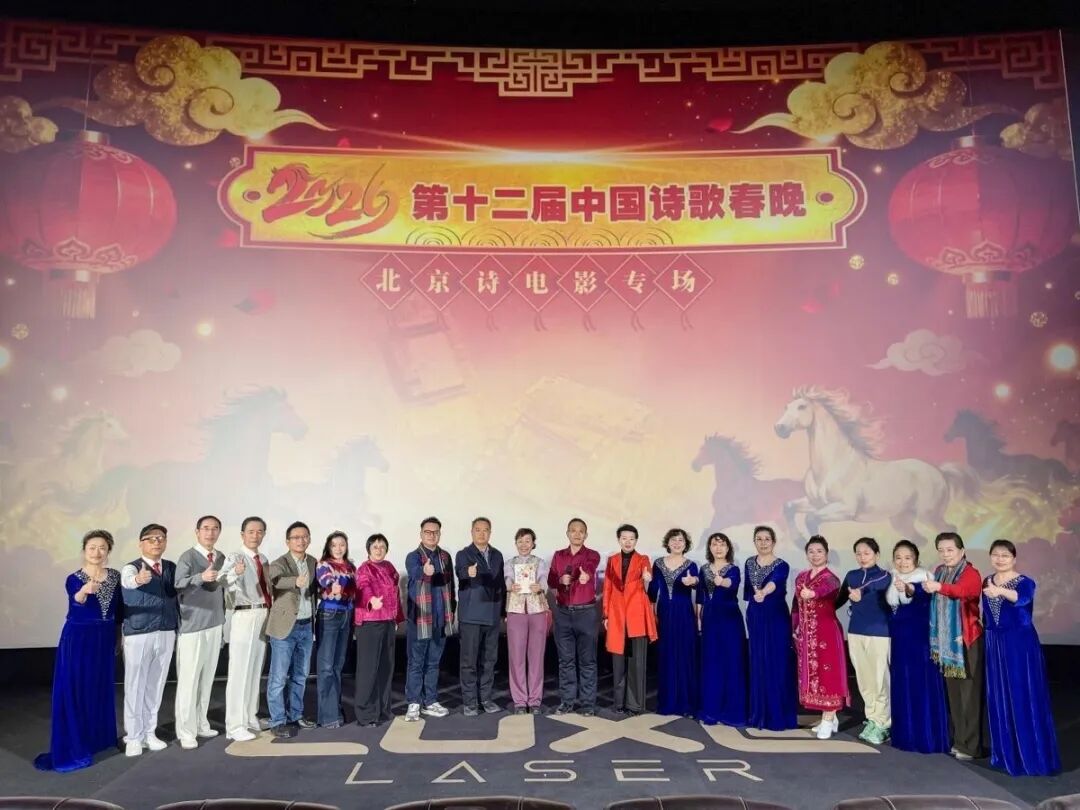 1月15日,2026第十二届中国诗歌春晚北京诗电影专场在北京新影联·华谊兄弟影院举办,中国诗歌春晚组委会成员携北京芳华朗诵团等八大朗诵团首诵报告文学《石榴花开》,拉开以朗诵进行“文化润疆”的帷幕,赢得现场观众的点赞。
