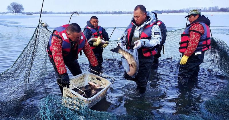 察布查尔县:塞锡湖冬捕头网捕捞鲜鱼超2000公斤