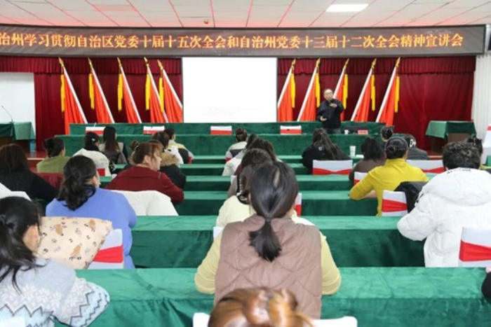 1月28日,自治州学习贯彻自治区党委十届十五次全会和自治州党委十三届十二次全会精神巡回宣讲团走进温泉县,开展专题宣讲活动。宣讲团以通俗易懂的语言、鲜活生动的实例,向温泉县广大党员干部群众深入解读全会核心要义、精神实质和实践要求,为温泉县“十五五”开好局、起好步凝聚思想共识、注入奋进力量。