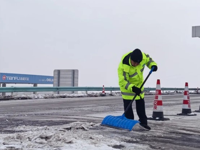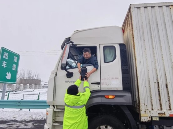 时间回溯至1月18日,受寒潮影响,托托互通匝道收费站附近路段积雪结冰。高善明驾驶的快递货车行至上坡路段时,因轮胎打滑被困,现场前后车流汇聚,情况危急。正在执勤的收费员吾斯曼江见状,立即脱下带有反光条的防寒大衣,俯身铺在驱动轮下,在零下十几度的严寒中着单衣,追着货车反复铺垫数次,直至车辆顺利驶离。