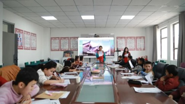 红领巾小课堂学生艾合散·那买提说:“课堂很有意思,我天天都来。在这儿能唱歌、朗读、看电影,老师还辅导作业,有好多小伙伴一起玩,每天充实又开心。”