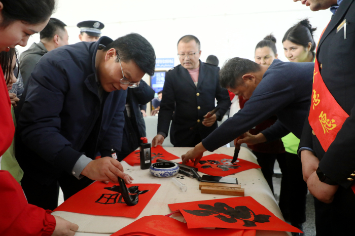 热比亚·艾麦提的话语,道出了许多旅客的心声。为让旅客带着福气回家,莎车火车站联合莎车县公安局、图书馆、乌鲁木齐铁路公安局喀什公安处莎车站派出所等单位开展了宣传服务活动。现场书写福字与春联,免费赠送给过往旅客。