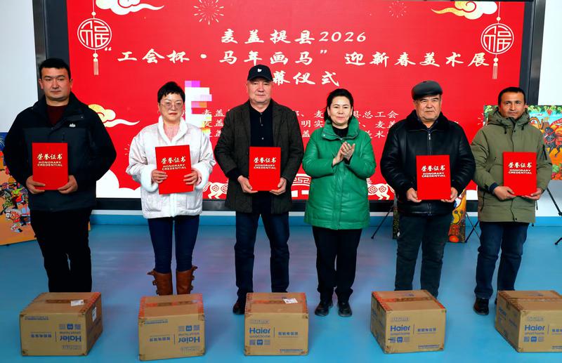 麦盖提县2026“工会杯・马年画马”迎新春美术展开展