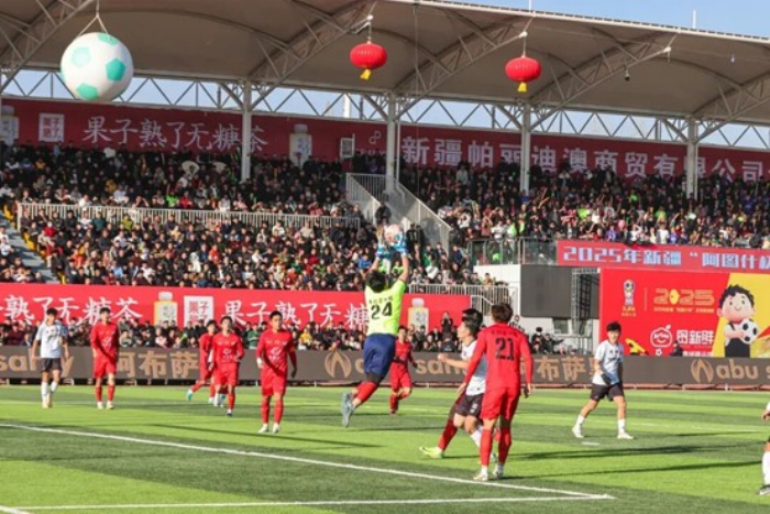 2025年新疆“阿图什杯”足球邀请赛半决赛现场(资料图)。