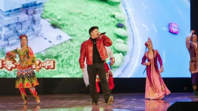 晚会的重磅环节,特邀歌手阿尔法的登场瞬间将现场氛围推向高潮,欢呼声、掌声响彻全场。他以高亢嘹亮的嗓音唱响主旋律歌曲《中国梦》,传统乐器的悠扬与现代编曲的动感完美融合,营造出多元文化交织碰撞的恢弘氛围,唱出了各族群众同心筑梦的共同心声。随后,阿尔法带来为叶城量身打造的原创歌曲《带上古丽去看卓玛》,并现场正式发布。这首歌以生活化的场景串联起浓浓的民族情谊,轻快的旋律搭配特色乐器的婉转伴奏,让不同地域的音乐风格和谐共鸣,独特的韵味沁人心脾,观众席间自发打起节拍,歌声、掌声、节拍声交织在一起,久久不息。