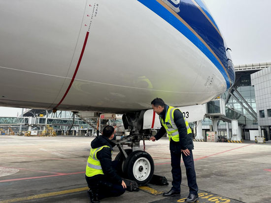 机坪上寒风凛冽,却挡不住师徒二人严谨的脚步。韩江带着孙建行,一步步开展绕机检查,从轰鸣的发动机叶片到承载重量的起落架轮胎,从机身的每一块蒙皮到隐蔽处的一枚细小螺栓,他都看得仔细、查得认真,一边检查一边耐心叮嘱:“飞行无小事,多一份细致,就多一份安全,每一个细节的疏忽,都可能关乎千万个家庭的团圆。”话语朴实,却字字千钧,藏着老飞行员对安全的敬畏,也藏着对徒弟的期许。