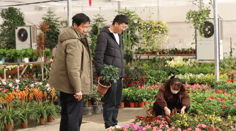 当被记者询问他的花卉大棚能迎来如今的销售旺季、生意爆棚的秘诀时,杨楠认真地说道:“这几年,我真切感受到了政策的温暖,从最初的小拱棚,到现在17个温室大棚、总面积达2000平方米,花卉品种从十几种增至100多种,员工也从1到2人发展到7名,这一步步的发展,都离不开党和政府的支持。政府不仅提供了创业扶持资金,还组织我们参加种植技术培训,帮我们拓宽销售渠道。”