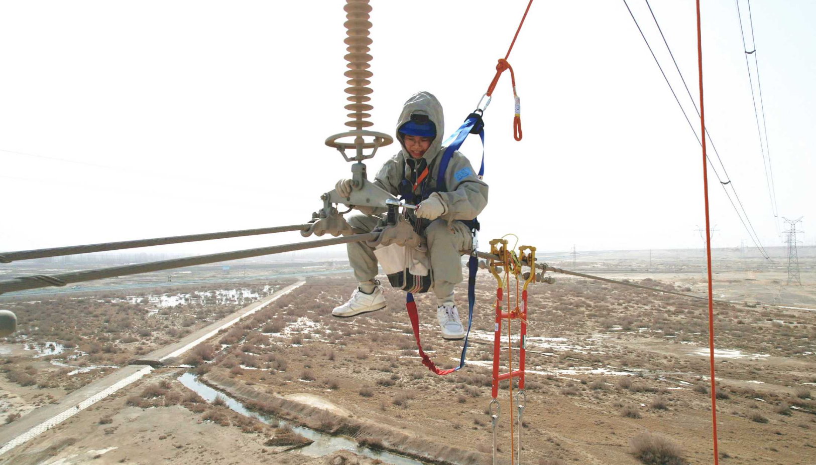 2025年1月,王茂玲调入带电作业班。3月,王茂玲又迎来了她新的挑战,在220千伏阿多一线开展带电作业消缺。站在悬空的软梯上,脚下是一眼望不到边的戈壁,头顶是嗡嗡作响的高压线,强电场带来的压迫感让人心跳加速。虽然已经练习了无数遍,但真到了实战的时候,心中还是免不了忐忑和紧张。穿上密不透风的屏蔽服,王茂玲开始攀爬软梯,小小的身影逐渐在众人的视线中变得模糊。